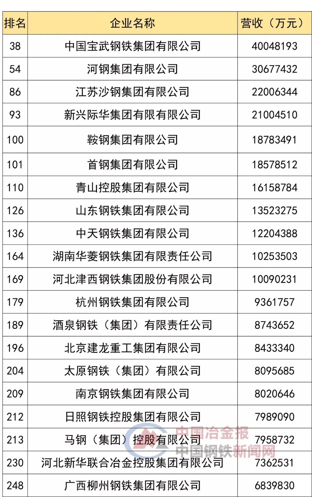 2018中國(guó)企業(yè)500強(qiáng)名單鋼鐵企業(yè)及相關(guān)企業(yè)