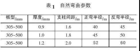 彎弧板自然彎曲參數,見表1。